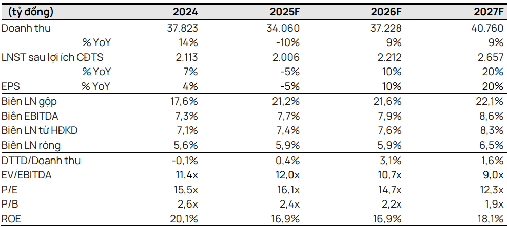 Trong báo cáo hồi giữa tháng 8, VCSC nhận định tăng trưởng doanh thu bán lẻ của PNJ sẽ tạm thời chững lại trong năm 2025, với mức tăng khoảng 7% so với năm 2024, phản ánh nhu cầu trang sức kém khả quan. Tuy nhiên, VCSC dự báo doanh thu bán lẻ của PNJ sẽ phục hồi 11% vào năm 2026 do PNJ có vị thế tốt để nắm bắt sự phục hồi trong chi tiêu của người tiêu dùng.