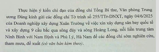 Theo nội dung văn bản, Xuân Trường mong muốn đầu tư xây dựng sân bay quốc tế tại huyện Ý Yên (Nam Định cũ) hoặc tại vị trí phù hợp do Bộ Xây dựng lựa chọn. Dự án có mục tiêu biến Ninh Bình trở thành trung tâm văn hóa – du lịch của Việt Nam và khu vực trong tương lai.